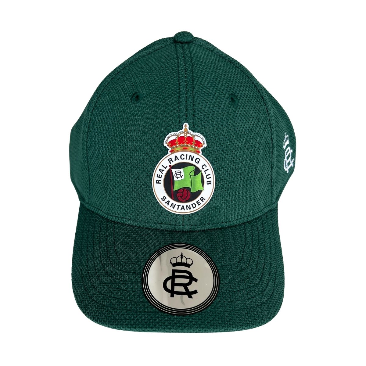 Gorra premium verde oficial del Real Racing Club con escudo frontal bordado. Diseño elegante, cómodo y exclusivo, disponible en tallas adulto y niño.