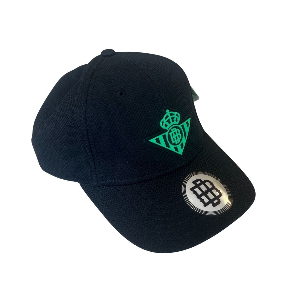 Lleva tu pasión verdiblanca a otro nivel con la gorra premium oficial del Real Betis Balompié, una pieza de merchandising exclusivo que combina diseño elegante, materiales de alta calidad y el espíritu inconfundible del club. Confeccionada en tejido resistente y transpirable, esta gorra negra presenta el escudo del Real Betis en el panel frontal, acompañado por un sticker metálico de autenticidad en la visera que garantiza su carácter oficial.