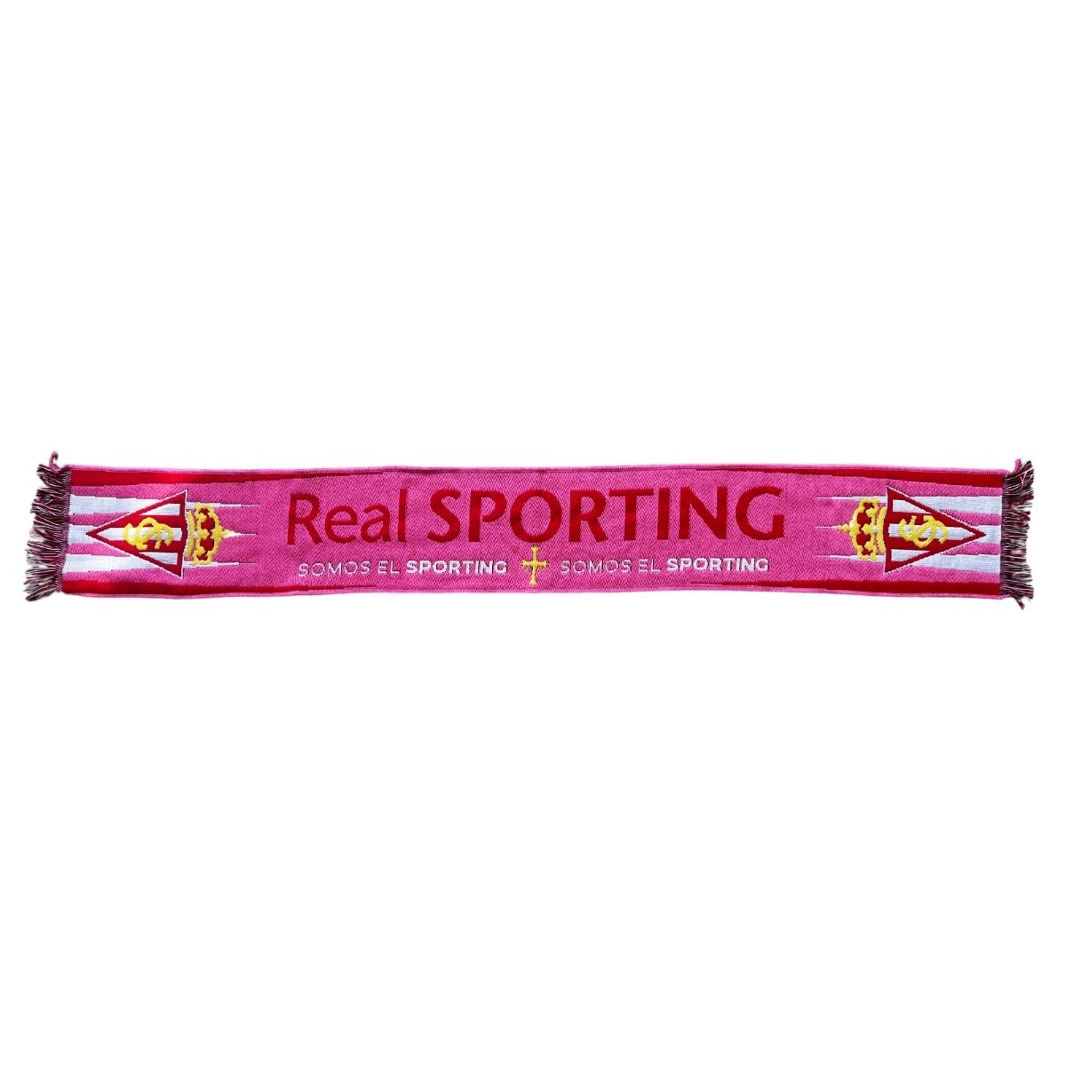Real Sporting de Gijón bufanda rosa somos el Sporting.La bufanda rosa oficial del Real Sporting de Gijón es el complemento ideal para cualquier aficionado que quiera lucir los colores del club con un toque diferente y moderno. Su diseño en tono rosa vibrante, junto al escudo oficial del Sporting en los extremos y el nombre del equipo en gran formato, la convierten en una pieza única dentro del merchandising oficial del Real Sporting. Fabricada con material suave, cálido y resistente, es perfecta para animar en El Molinón, para el día a día o para regalar a cualquier sportinguista. Una bufanda exclusiva que combina estilo, comodidad y orgullo rojiblanco.La bufanda rosa oficial del Real Sporting de Gijón es el complemento ideal para cualquier aficionado que quiera lucir los colores del club con un toque diferente y moderno. Su diseño en tono rosa vibrante, junto al escudo oficial del Sporting en los extremos y el nombre del equipo en gran formato, la convierten en una pieza única dentro del merchandising oficial del Real Sporting. Fabricada con material suave, cálido y resistente, es perfecta para animar en El Molinón, para el día a día o para regalar a cualquier sportinguista. Una bufanda exclusiva que combina estilo, comodidad y orgullo rojiblanco.